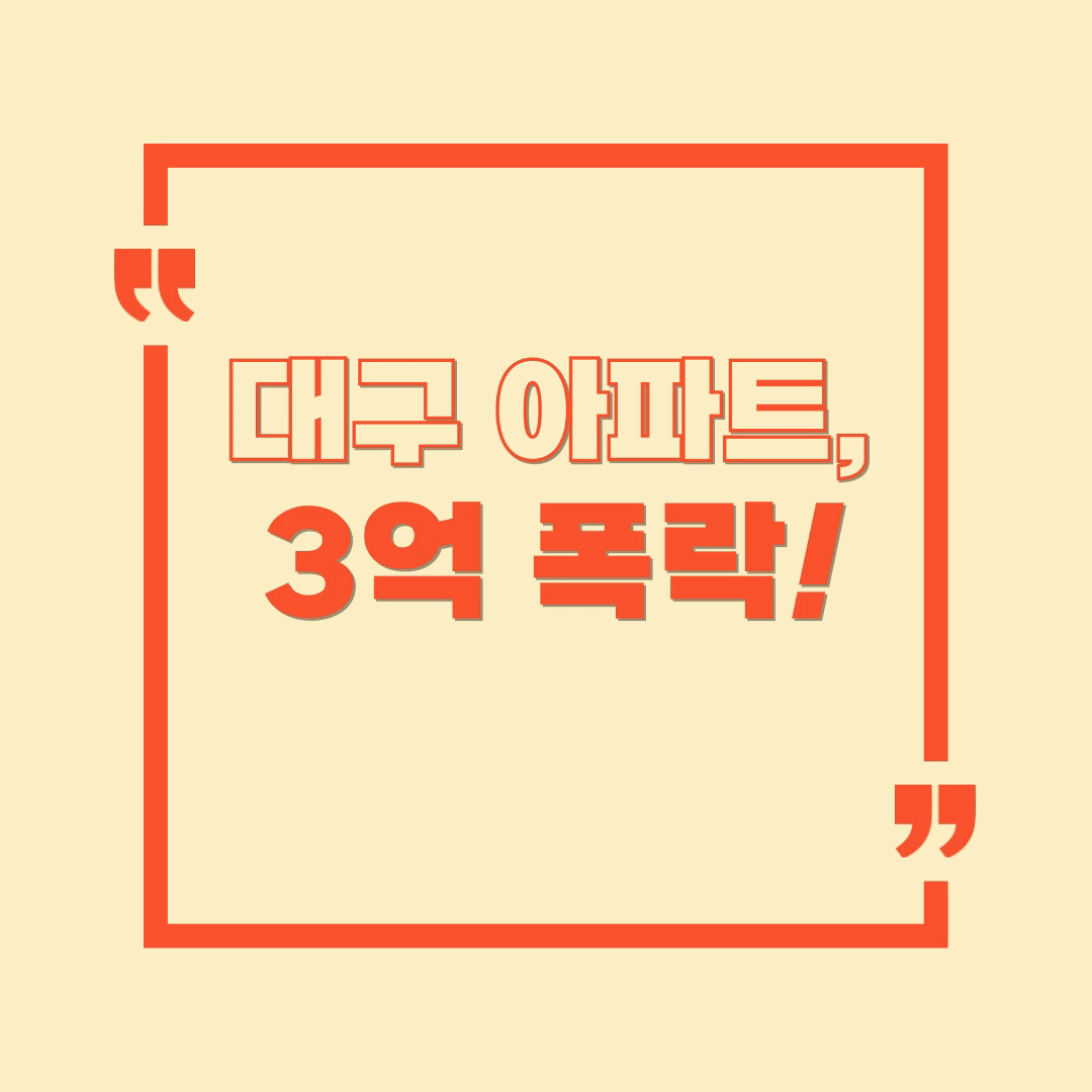 대구 집값 3억 하락, 결국 폭탄이 터졌다! 이제 내가 사야 할 타이밍?
