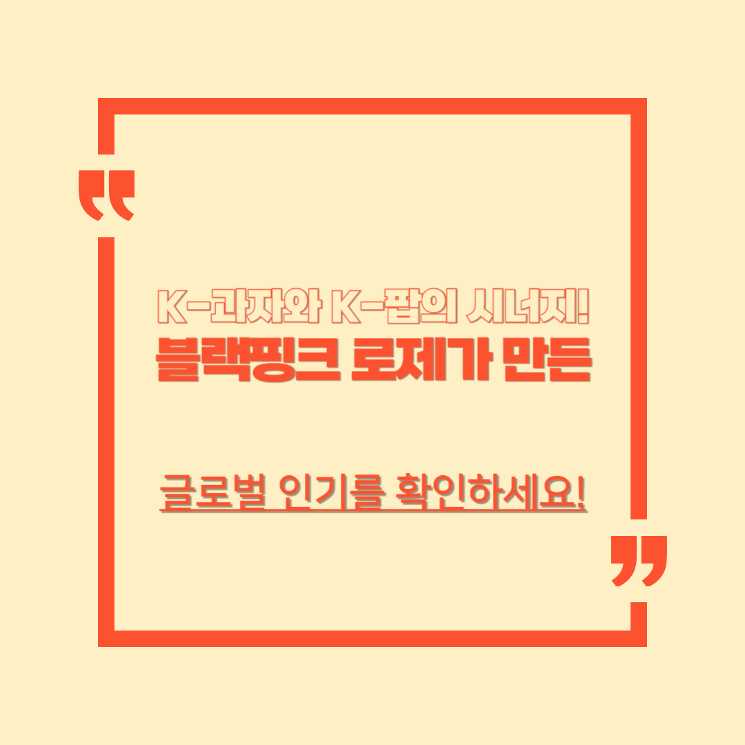 "Discover the irresistible global appeal of Korean snacks with Blackpink's Rosé, as she unveils the flavors taking over the world. From shrimp chips to choco pies, find out why these K-snacks are becoming a viral sensation thanks to K-pop's influence on snack culture." "Korean Snacks that are Dominating the Global Market", "How Blackpink's Rosé is Fueling the Global Craze for K-Snacks", "K-pop and Korean Snacks: The Perfect Fusion of Music and Food", "Discover the Best Korean Snacks Recommended by K-pop Stars" #KoreanSnacks #KpopMarketing #KoreanFoodExport #KoreanCulture #KpopInfluence #KoreanChocoPie #KoreanShrimpSnack #BlackpinkRosé #KpopFoodTrend #KoreanProducts#K과자 #K푸드 #K팝 #블랙핑크로제 #K팝스타 #K-푸드의성장 #글로벌시장 #새우깡 #초코파이 #K팝과K푸드 #한국과자
