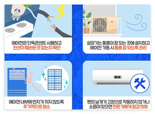 ※ 이 글은 특정 제품이나 업체를 홍보하거나 비방하려는 목적이 아닌, 최근 증가하는 에어컨·선풍기 화재 예방에 대한 올바른 정보 제공과 안전수칙 공유를 위해 작성된 콘텐츠입니다.