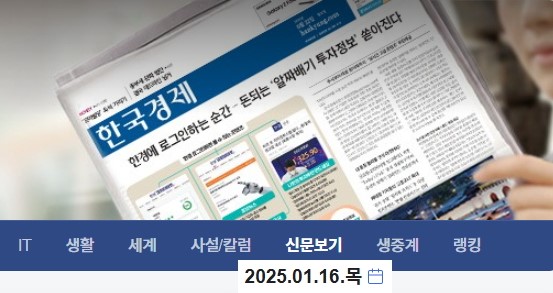 | 2025년 1월 17일자 한국경제신문 주요 기사 요약 - 경제, 정치, 사회 트렌드 & 이슈 분석 (28) | 2025.01.17 |